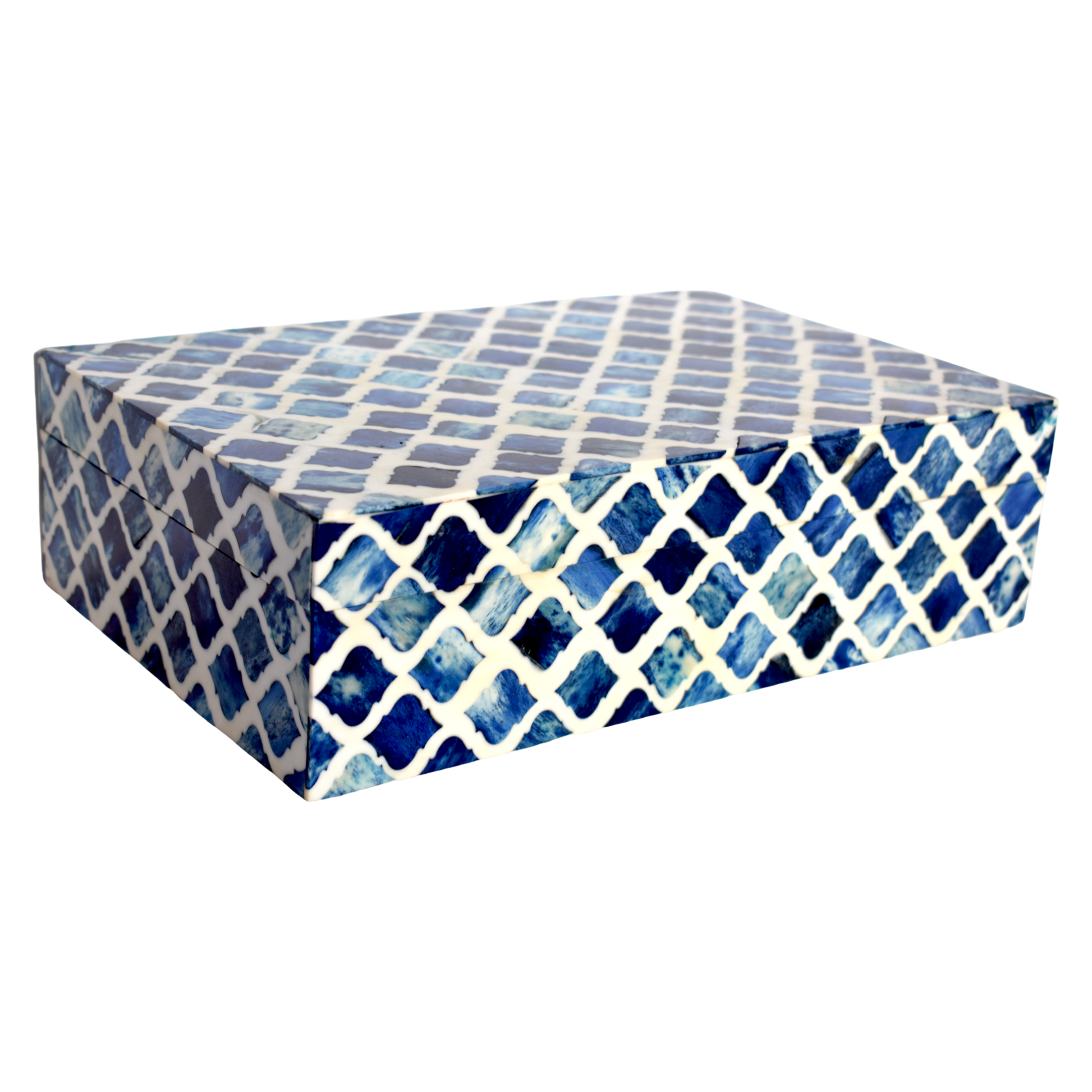 Bone Inlay Box – Indigo Mosaic Pattern