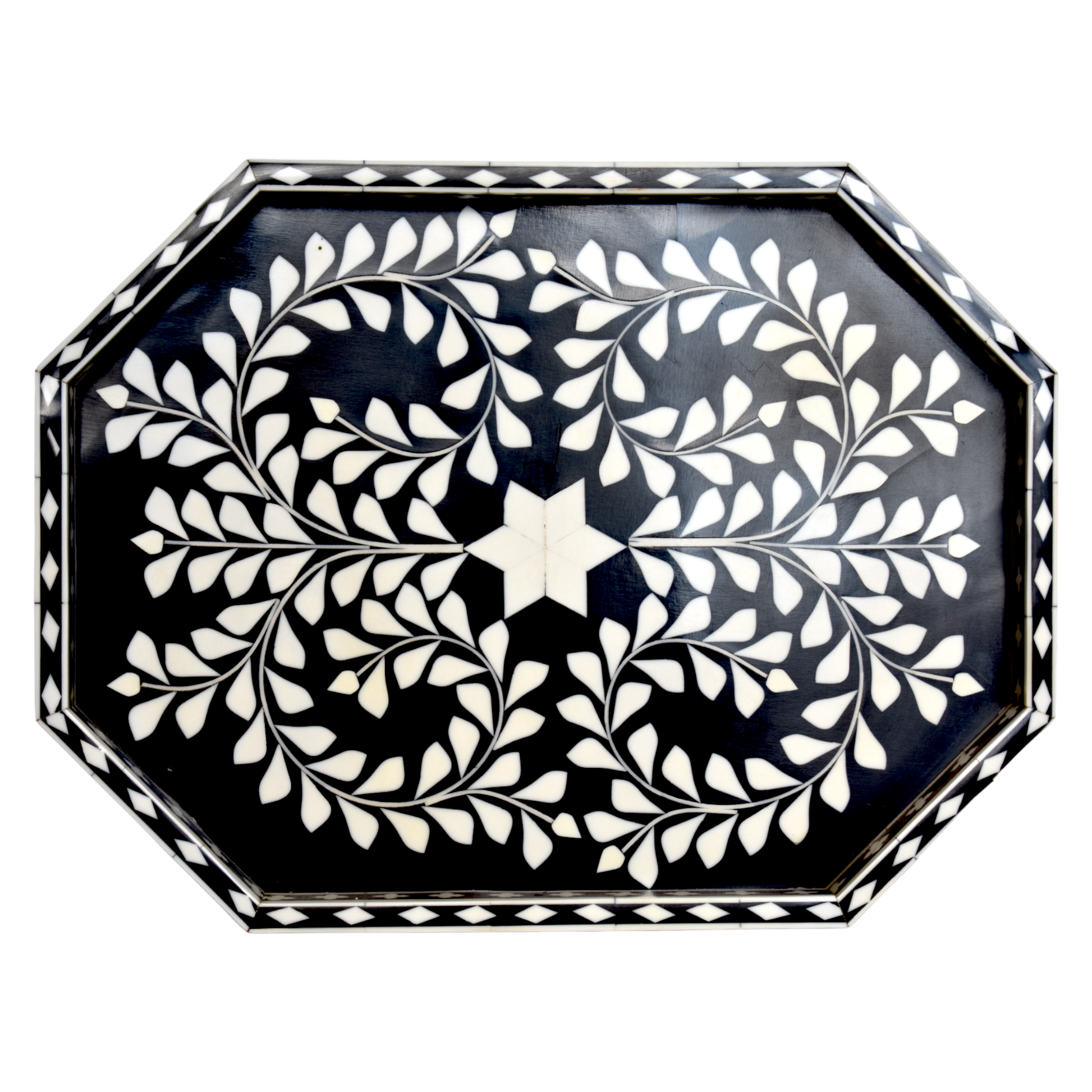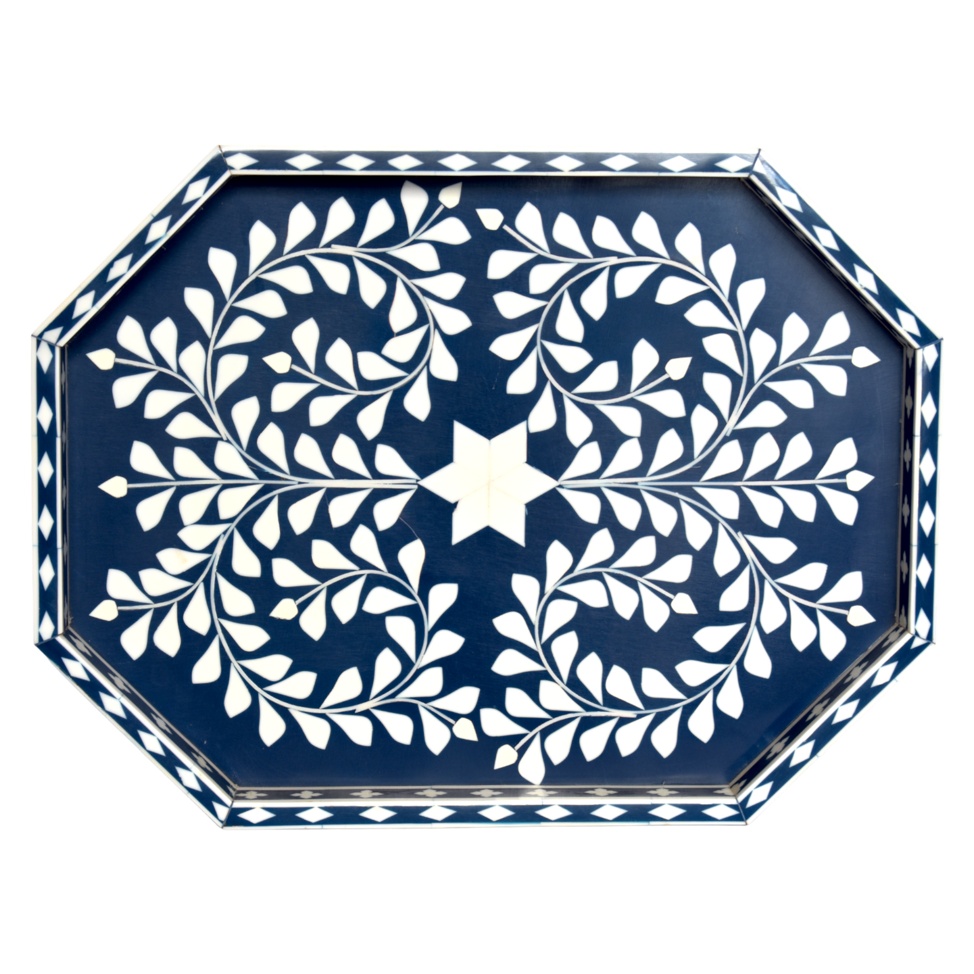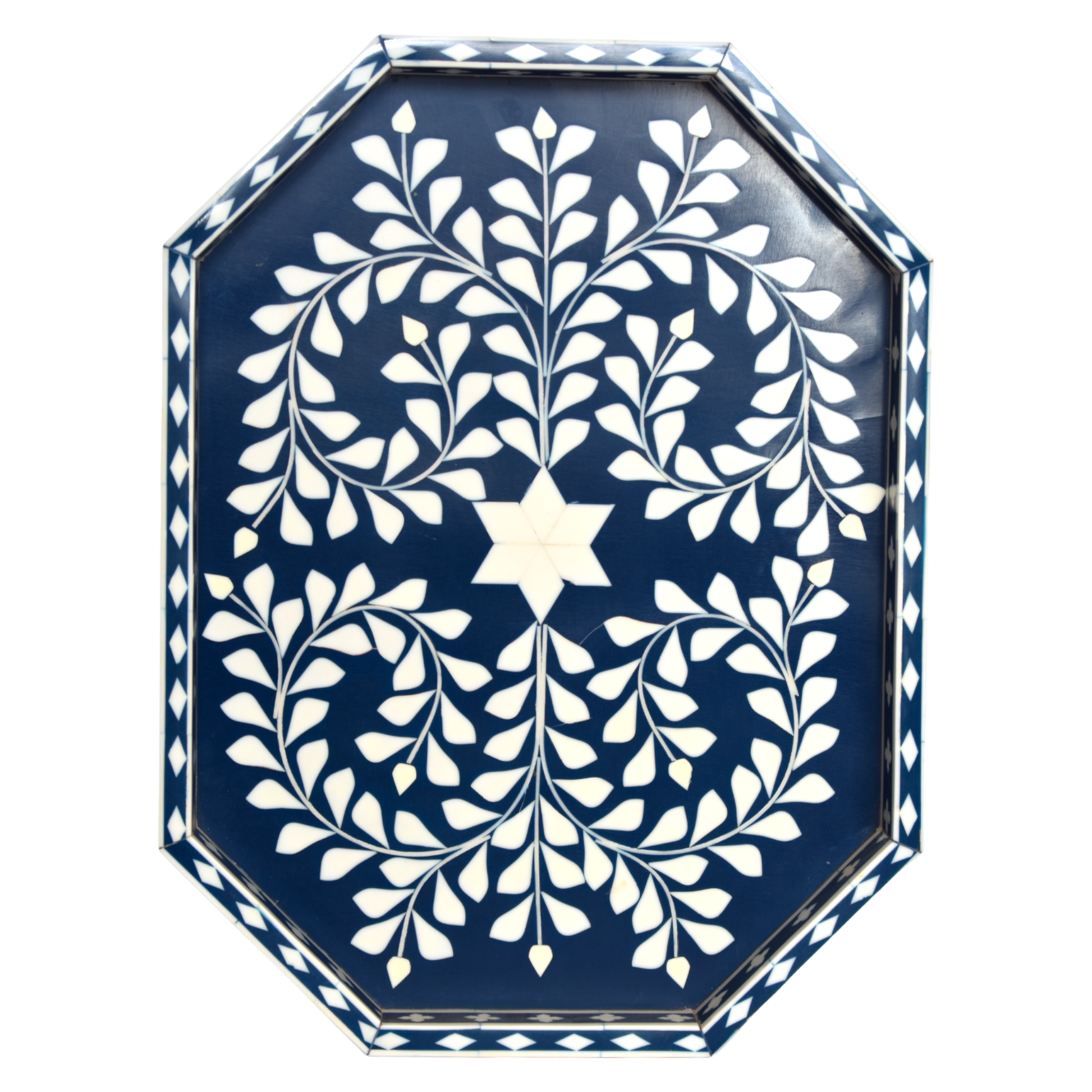 Bone Inlay Octagon Tray – Indigo Vine Pattern