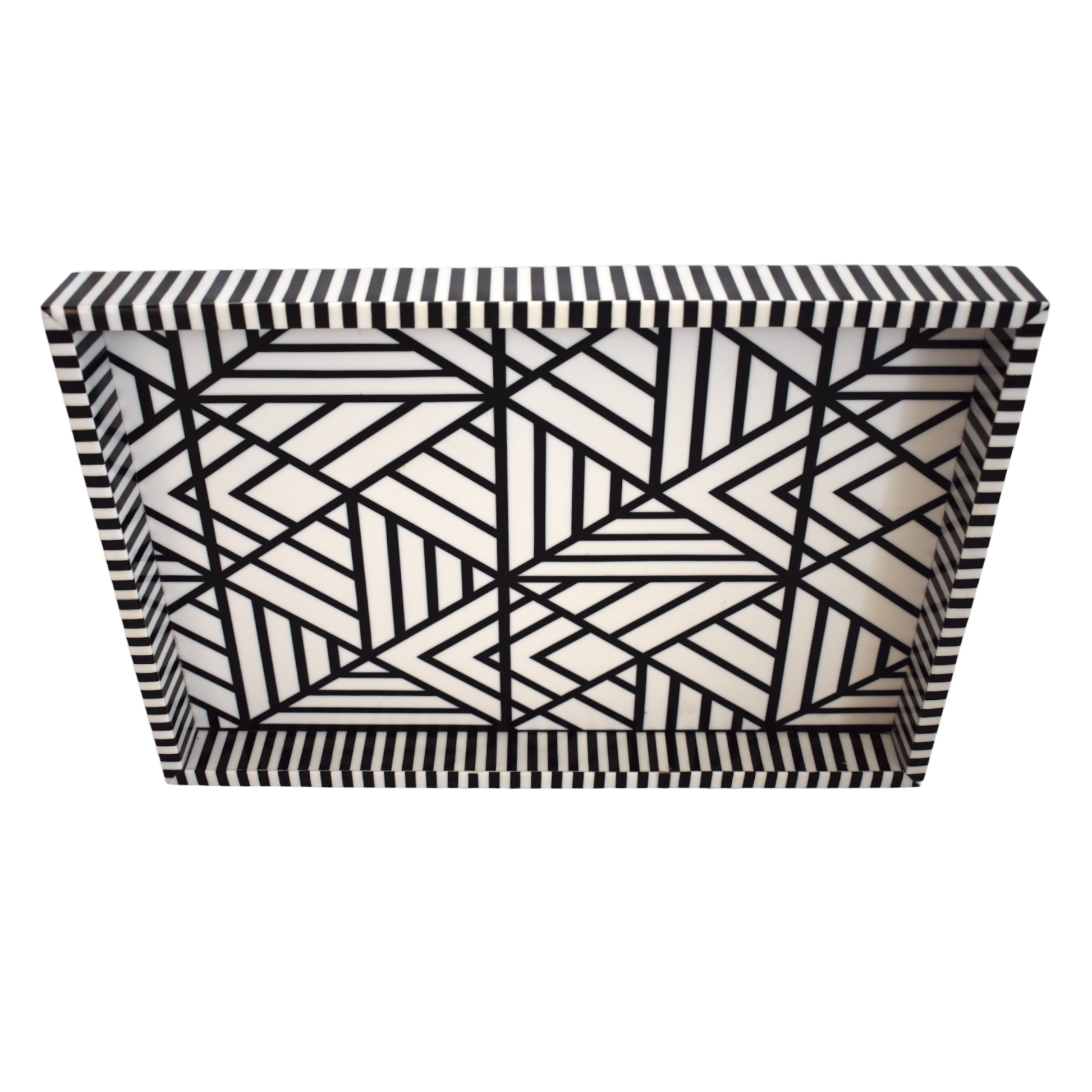 Bone Inlay Rectangle Tray – Black & White Geometric