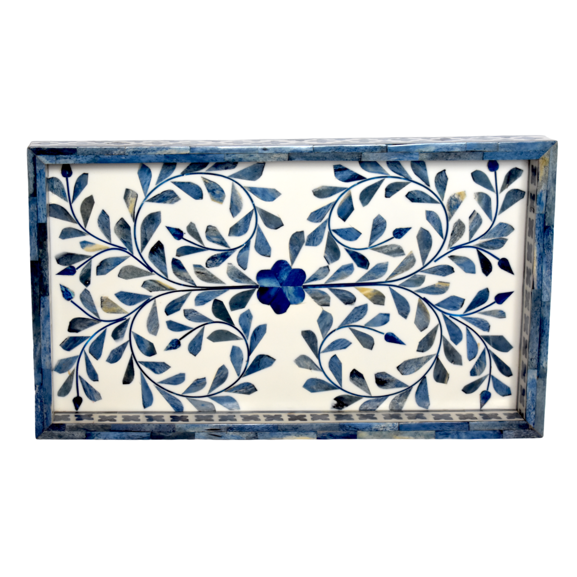 Bone Inlay Rectangle Tray – Botanical Vine Pattern