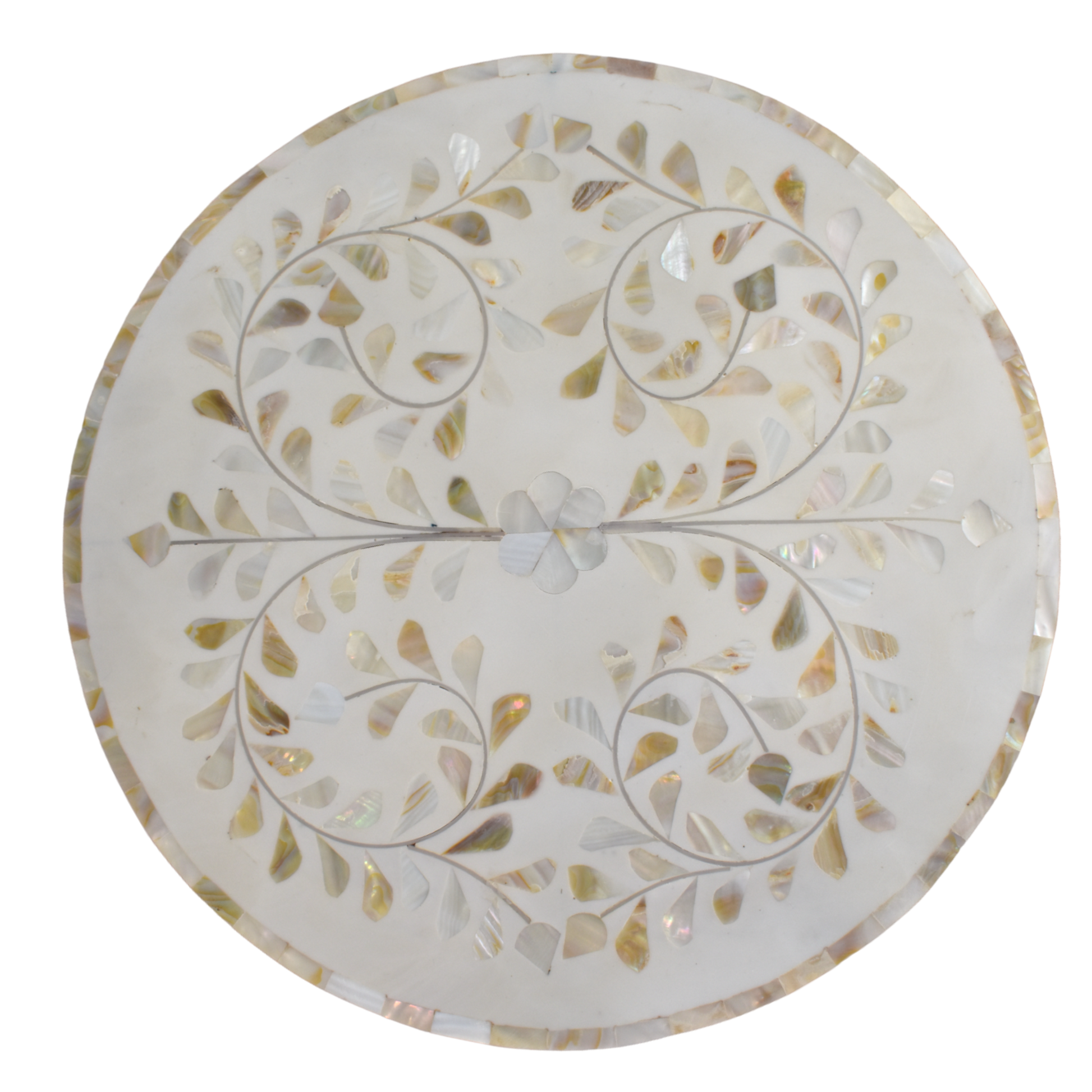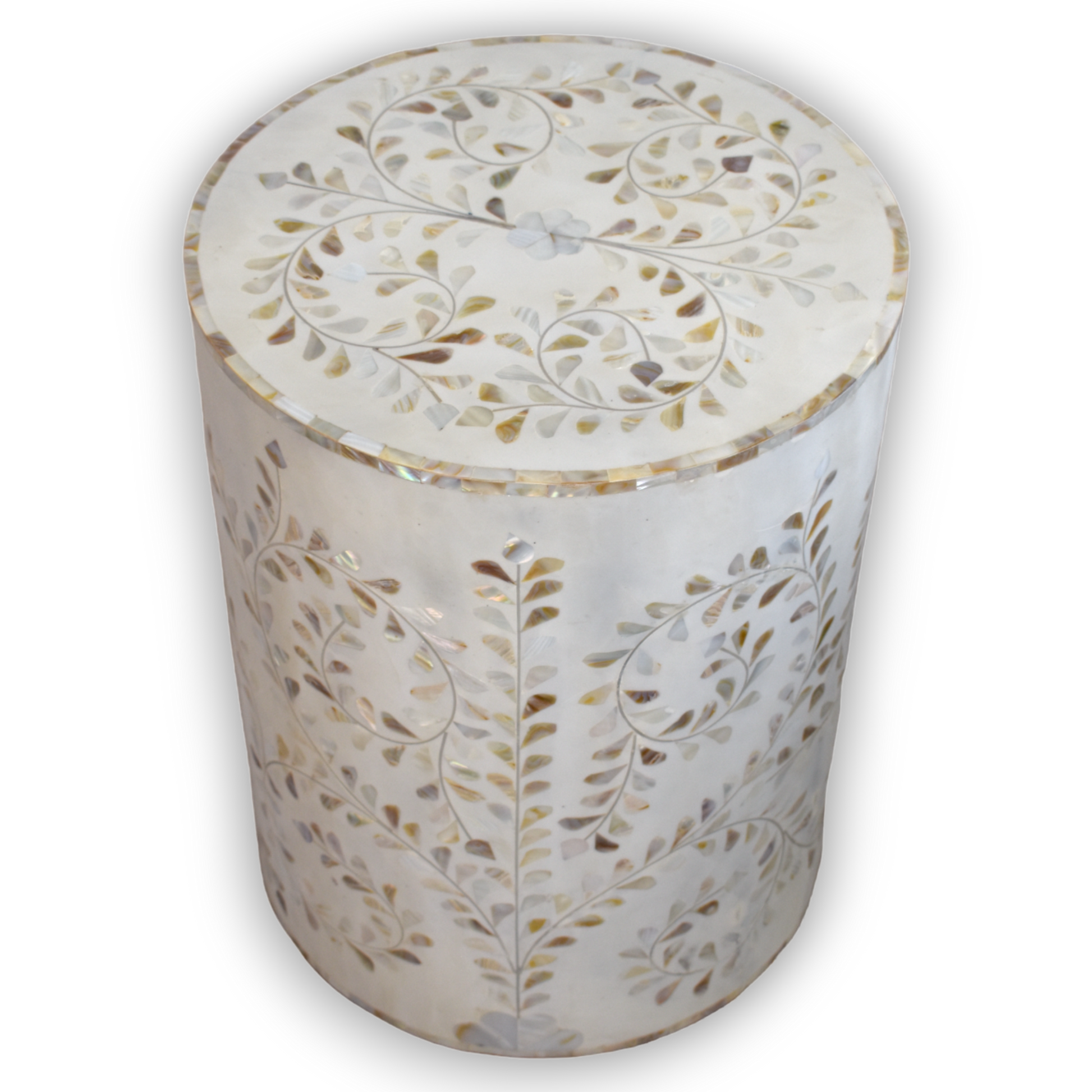 Mother of Pearl Drum Side Table – Floral Vine Pattern