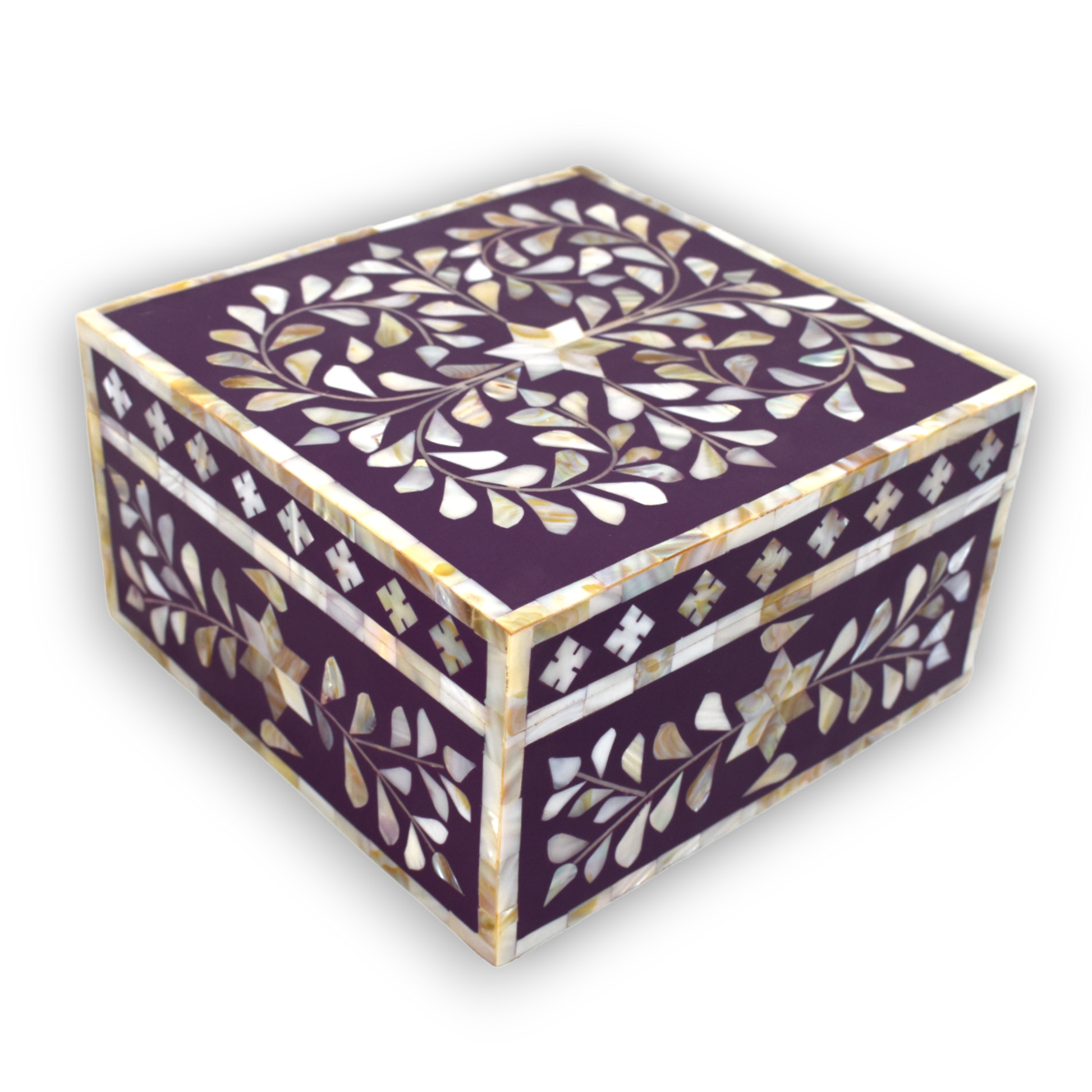 Bone Inlay Keepsake Box – Floral Vine Pattern